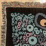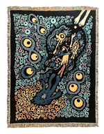 Woven cotton throw 8lanket (or tapestry, if you'd like). Measures 54"x 72". 100% cotton and recycled cotton. Washer and dryer safe. Woven in North Carolina.